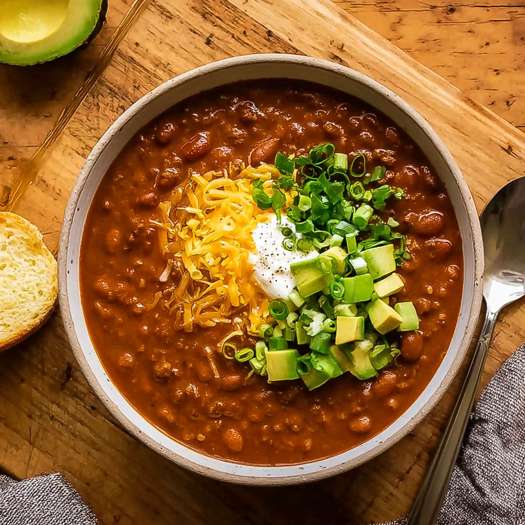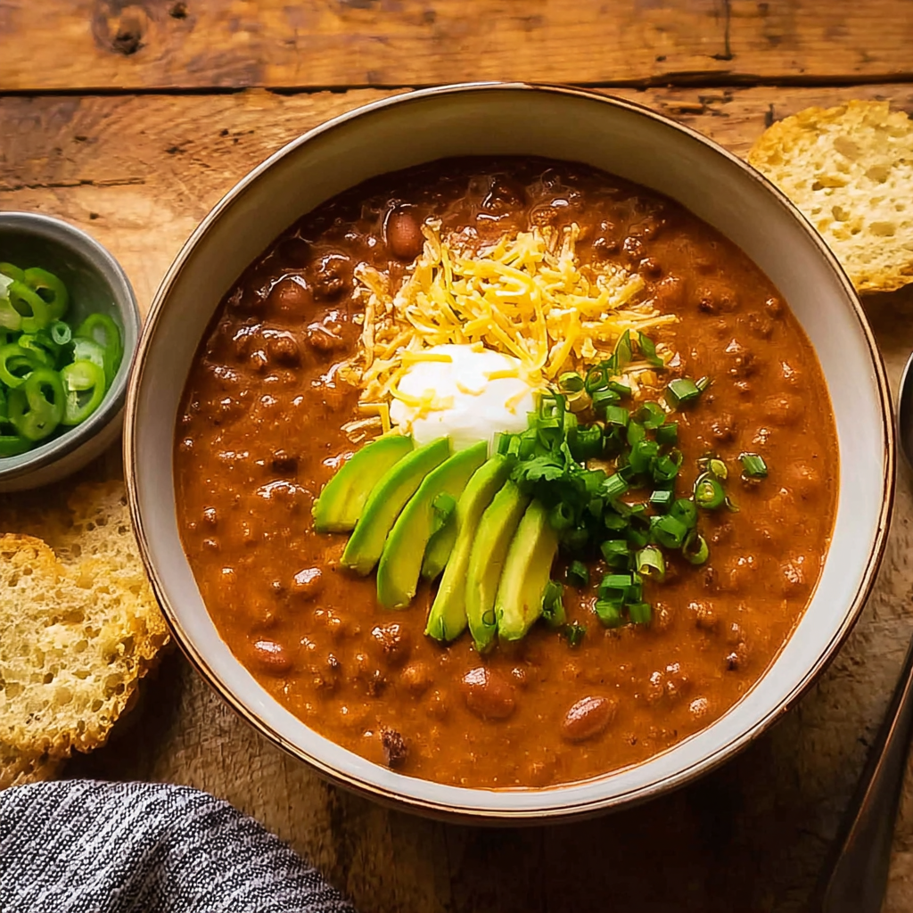 - Chopped green onions – These provide a fresh, crisp bite that complements the chili.