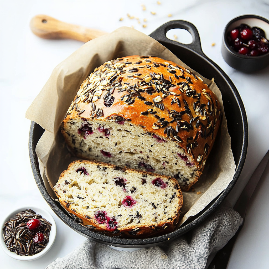 The No-Knead Cranberry Wild Rice Bread is an easy yet delicious choice for any meal. Its unique flavors and soft texture make it versatile enough for breakfast or as a side dish. Feel free to customize it with your favorite nuts or seeds for added crunch!